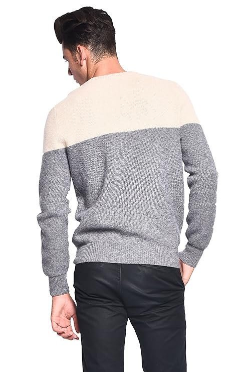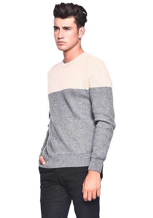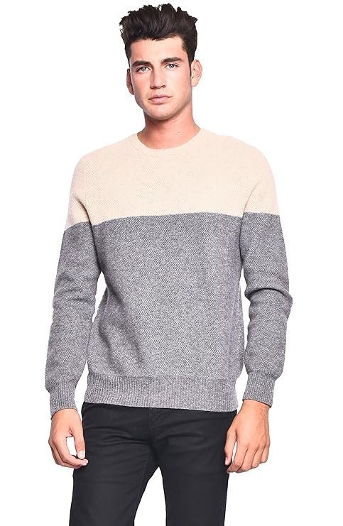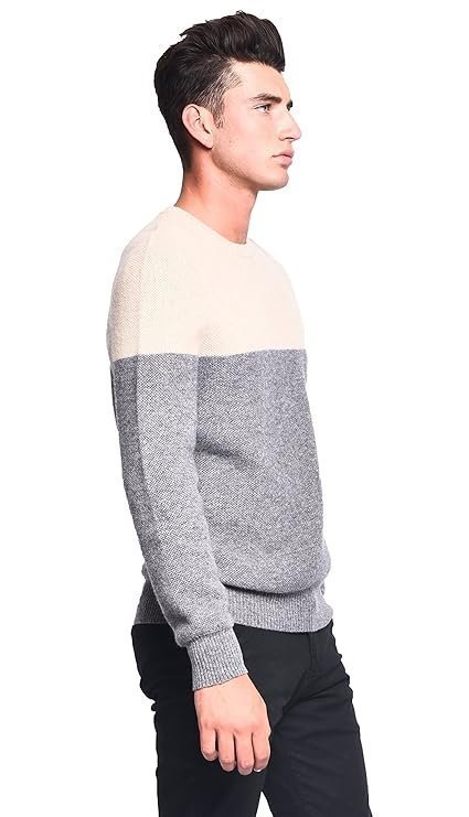 3VERY Men’s Women’s Unisex 100% Cashmere Cozy 2-Tone Round Neck