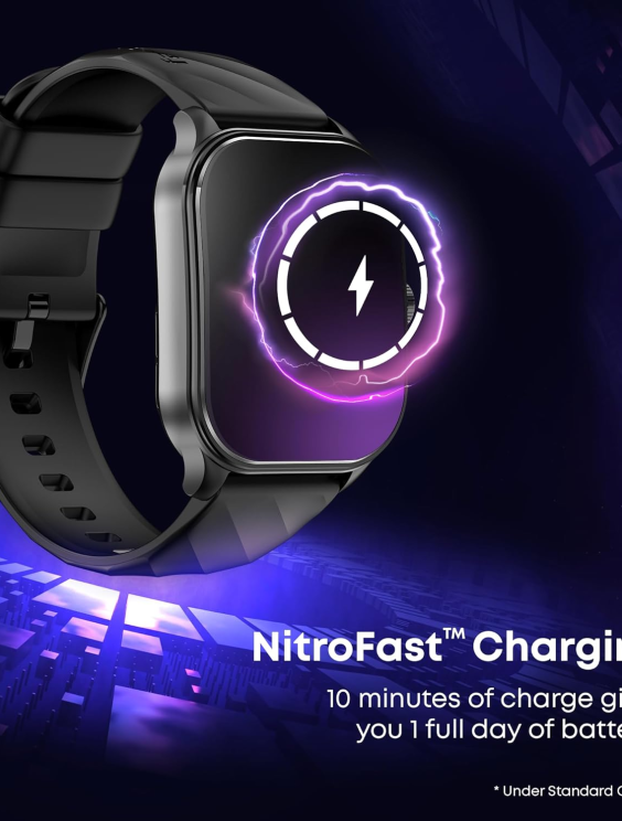 • SingleSync BT Calling with Favourite Contacts storage (Android – 100, iOS – 50) and Quick Replies (Android); NitroFast Charging with 10 min charge to fuel up 1 day of battery