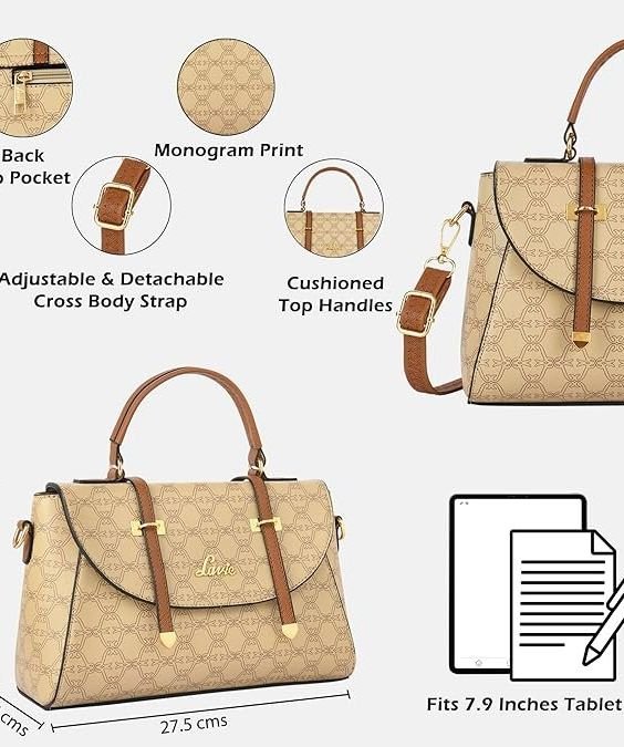 - Made from high quality, soft material, this satchel features Monogram print and contrast touch with metallic embellishment. A perfect option for a trip to the mall or an official outing, it can be paired with a stylish top and well fitted denims. This spacious yet stylish satchel will make it a perfect choice for gifts for all occasions.