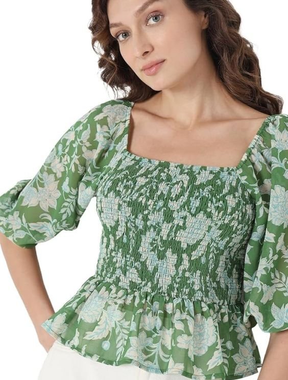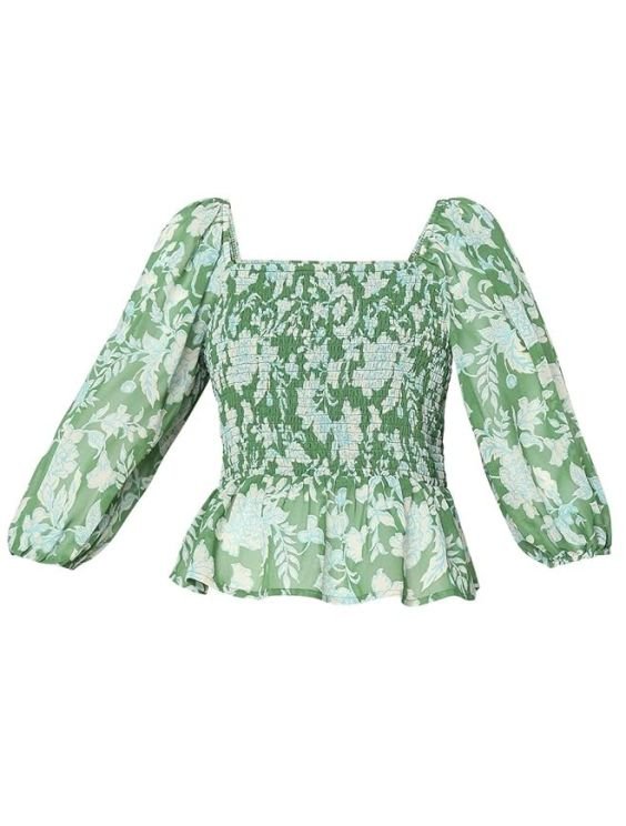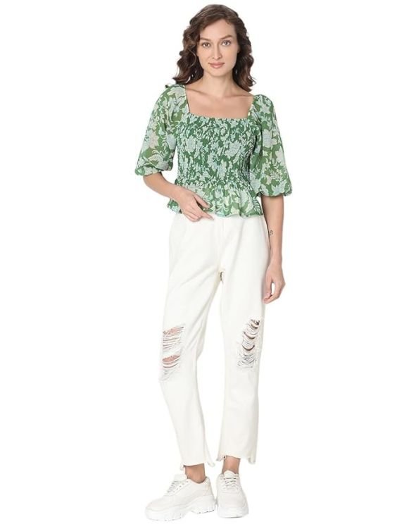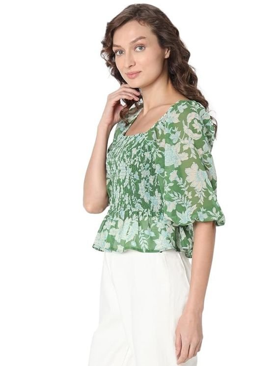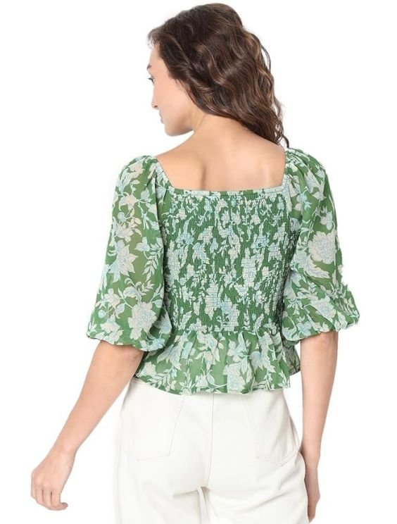 VERO MODA Floral Printed Puff Sleeve Cinched Waist Crop Top