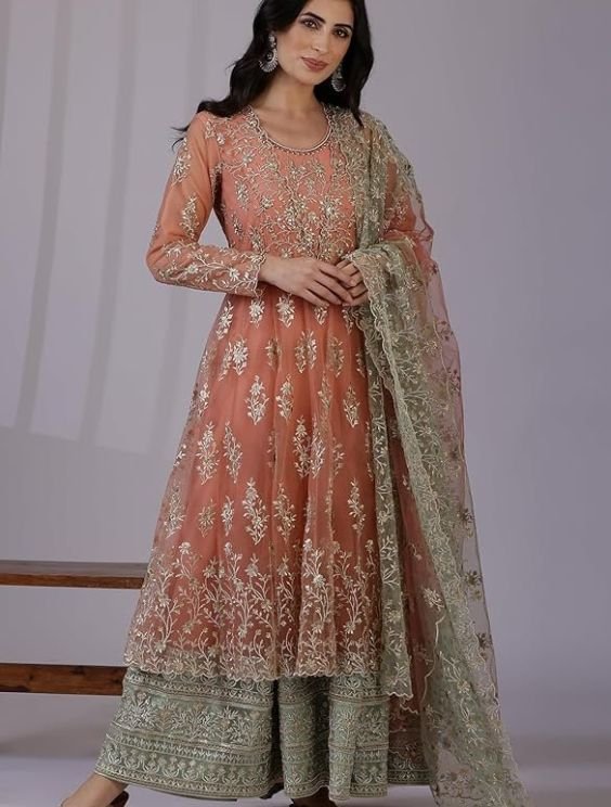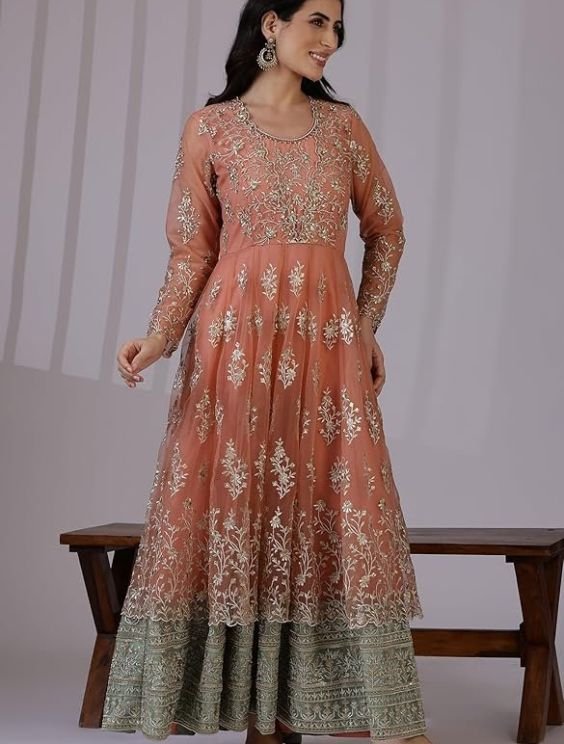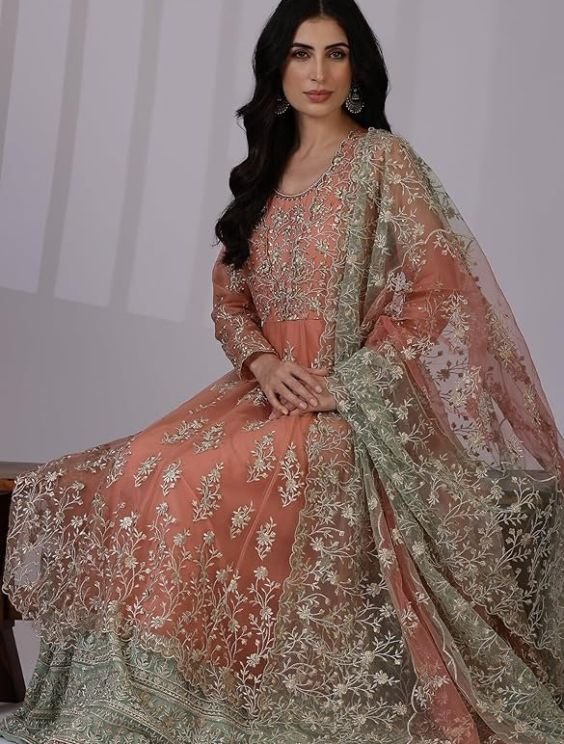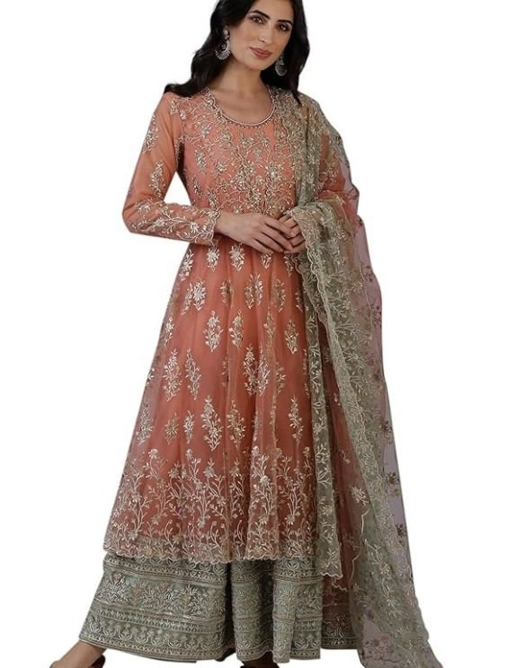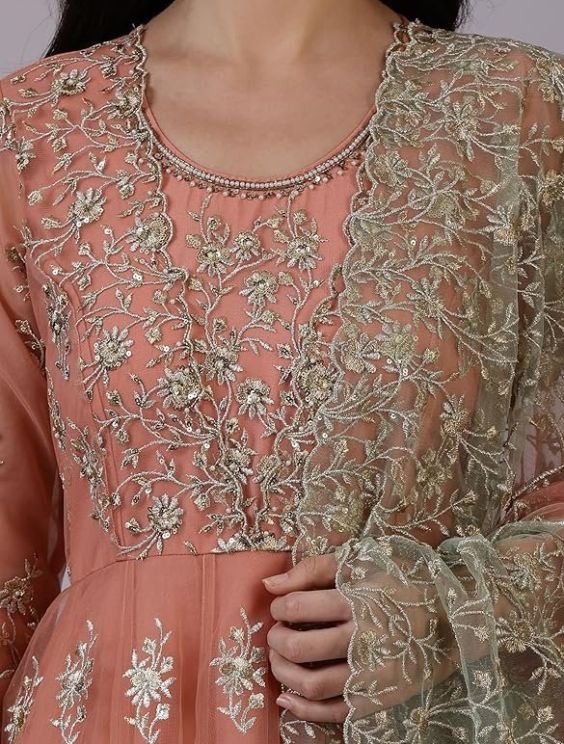 - Style this beautiful heavy festive dress and dupatta set with our jewellery and heels to get statement look.